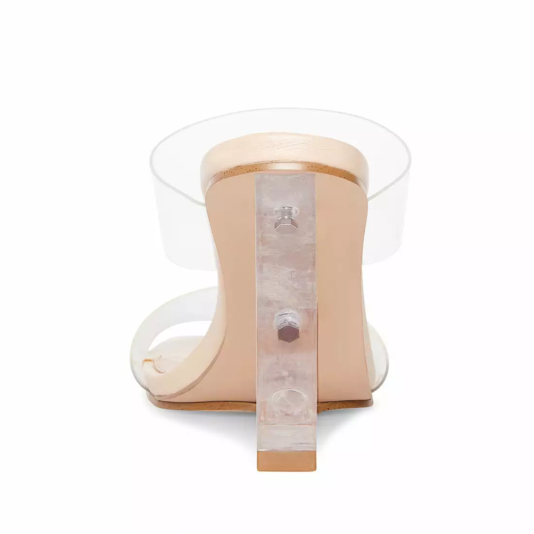 Bring a fresh take to summer looks in ISA. A classic strappy sandal features a clear wedge and a square toe for a modern appeal.