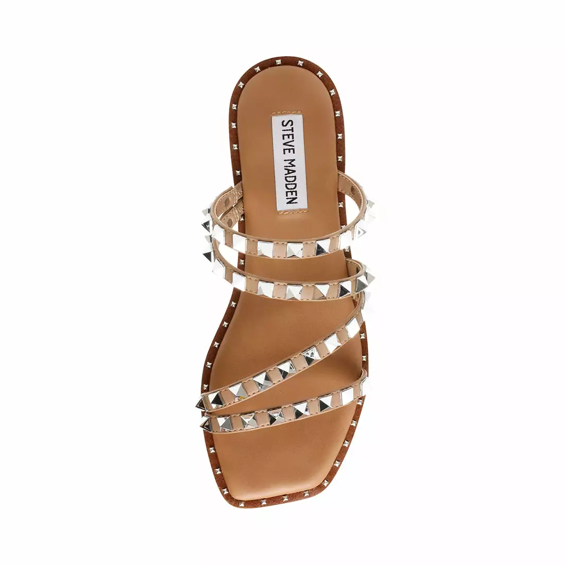 Trimmed in glamorous rhinestones or edgy pyramid studs, this strappy slide gives getups a festive finishing touch. A barely-there heel punctuates, offering support and gentle lift that won’t slow your stride.