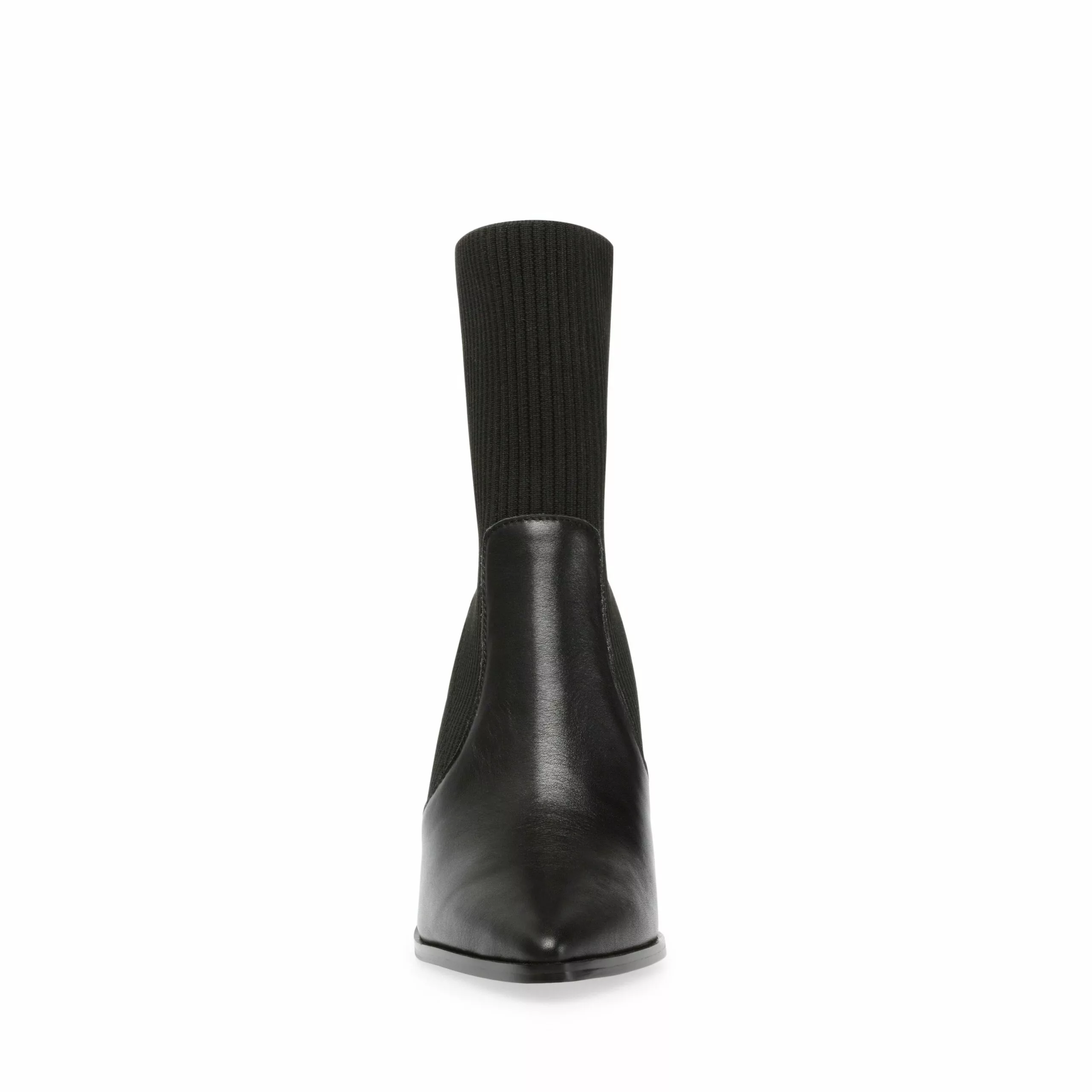 Sharp lines and an avant-garde angular heel give this boot a killer look, while a soft knit shaft allows for easy pull-on entry. A fierce finishing touch for any fashion-lovinโ lady.ย
