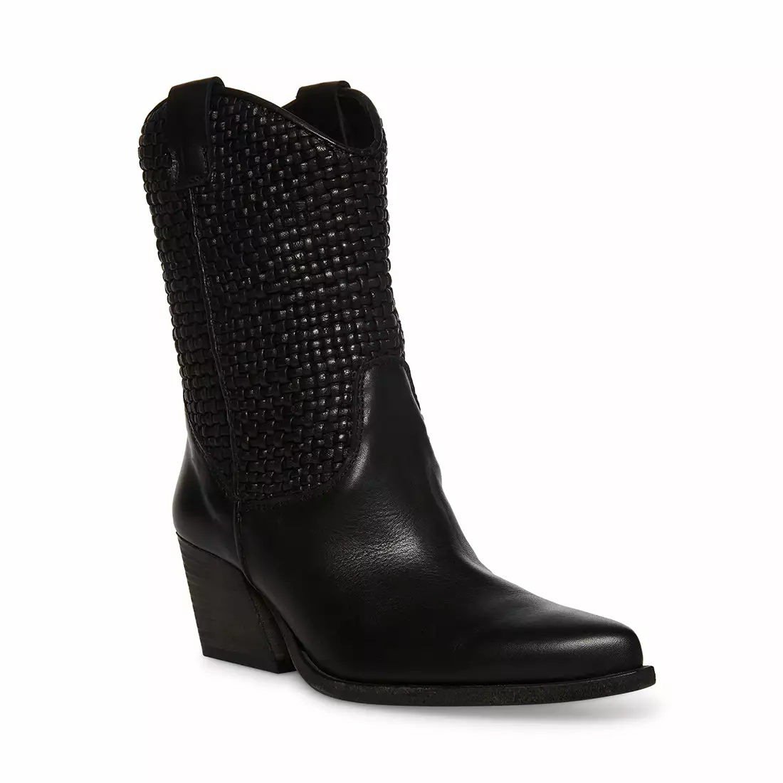 SADDLE up to these gorgeous cowboy boots. This sleek pointed-toe pair features a woven design that takes any look to the next level.