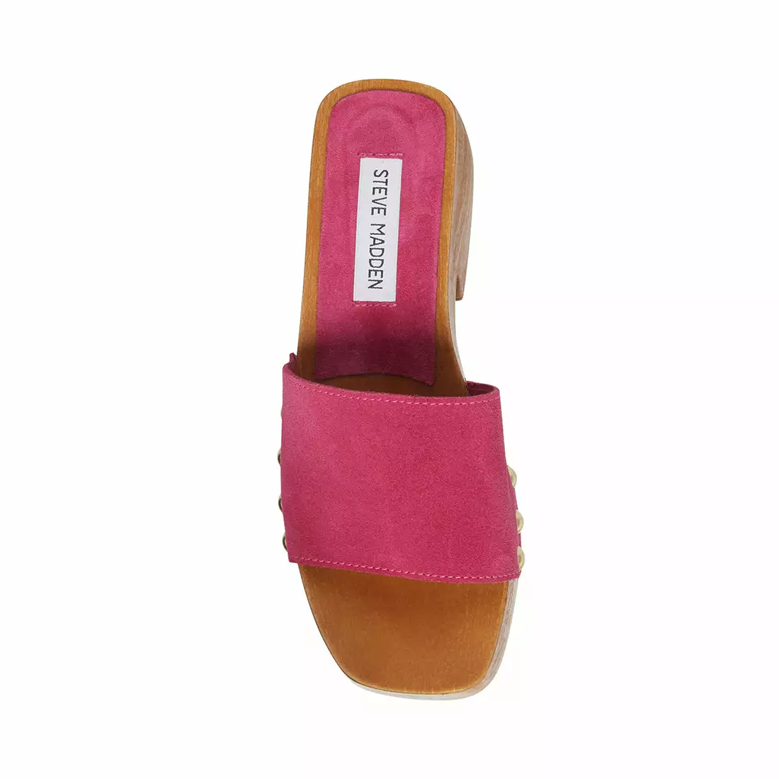 Slide into IZZY, a SM exclusive that’s sure to turn heads. Set on a woodgrain platform sole, a luxe suede strap and footbed add a cool contrast.