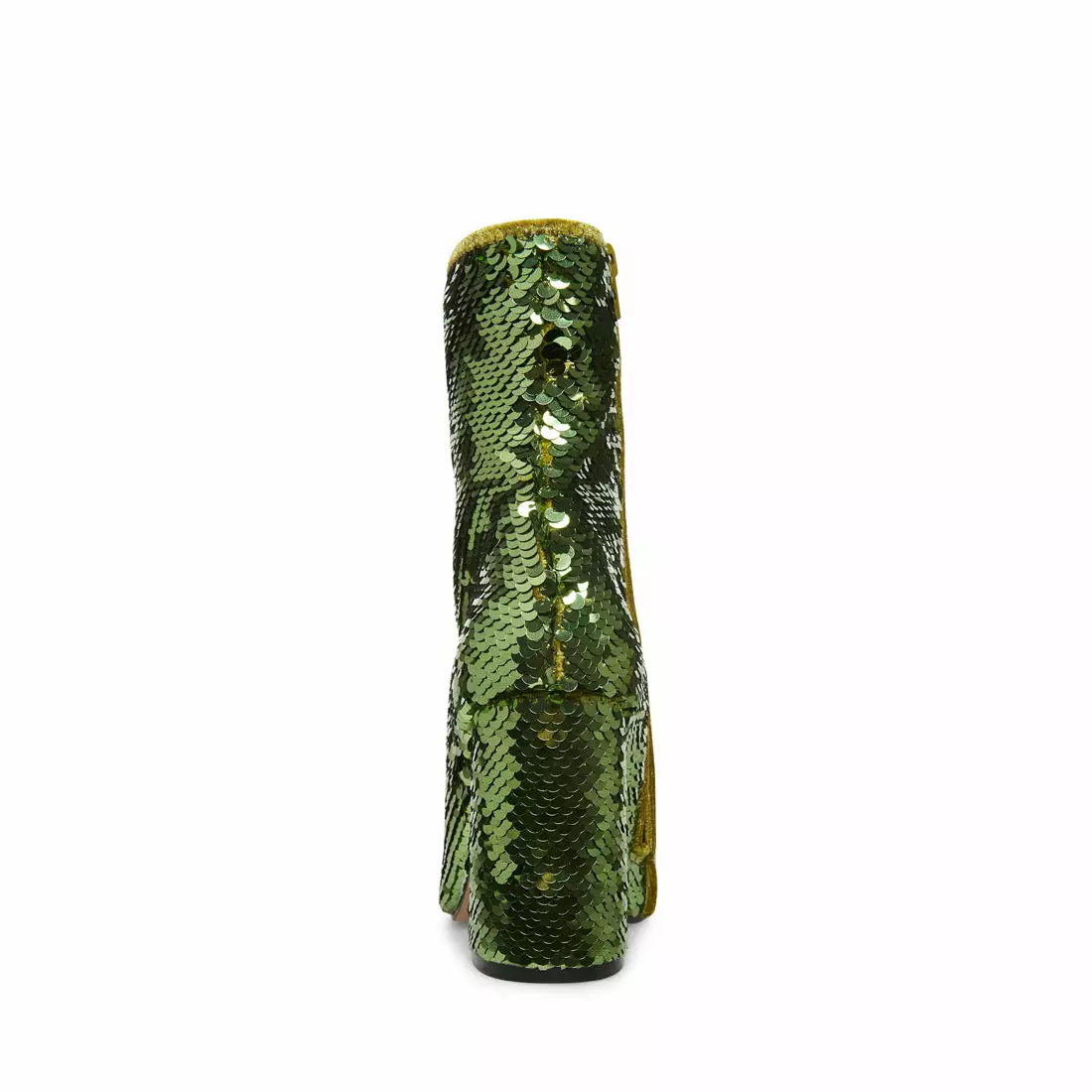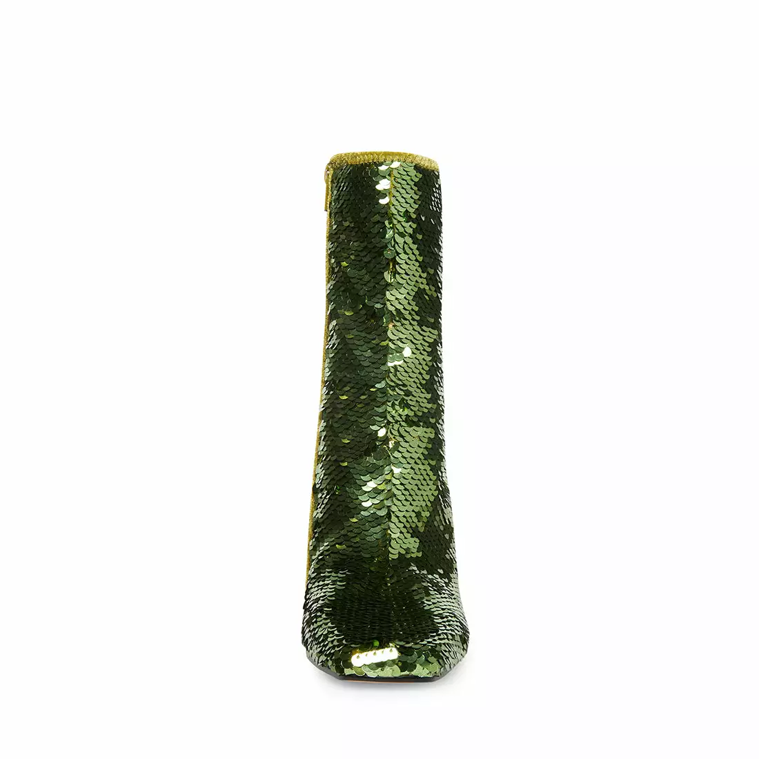 We can thank the glam factory for these show stopping booties. This pair sits on a subtly flared heel with all-over sequins for that burst of metallic we love.