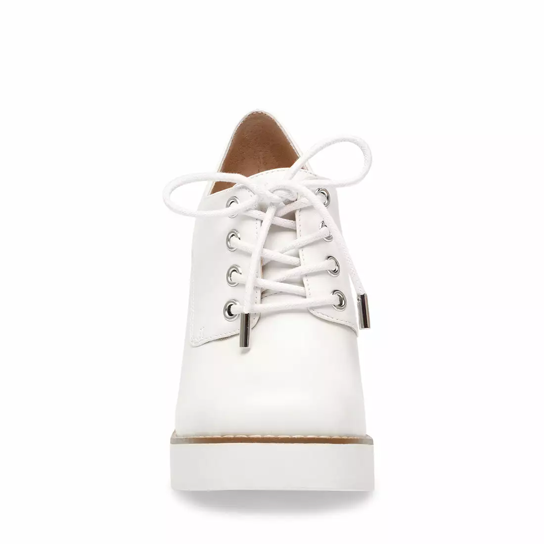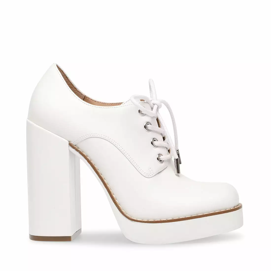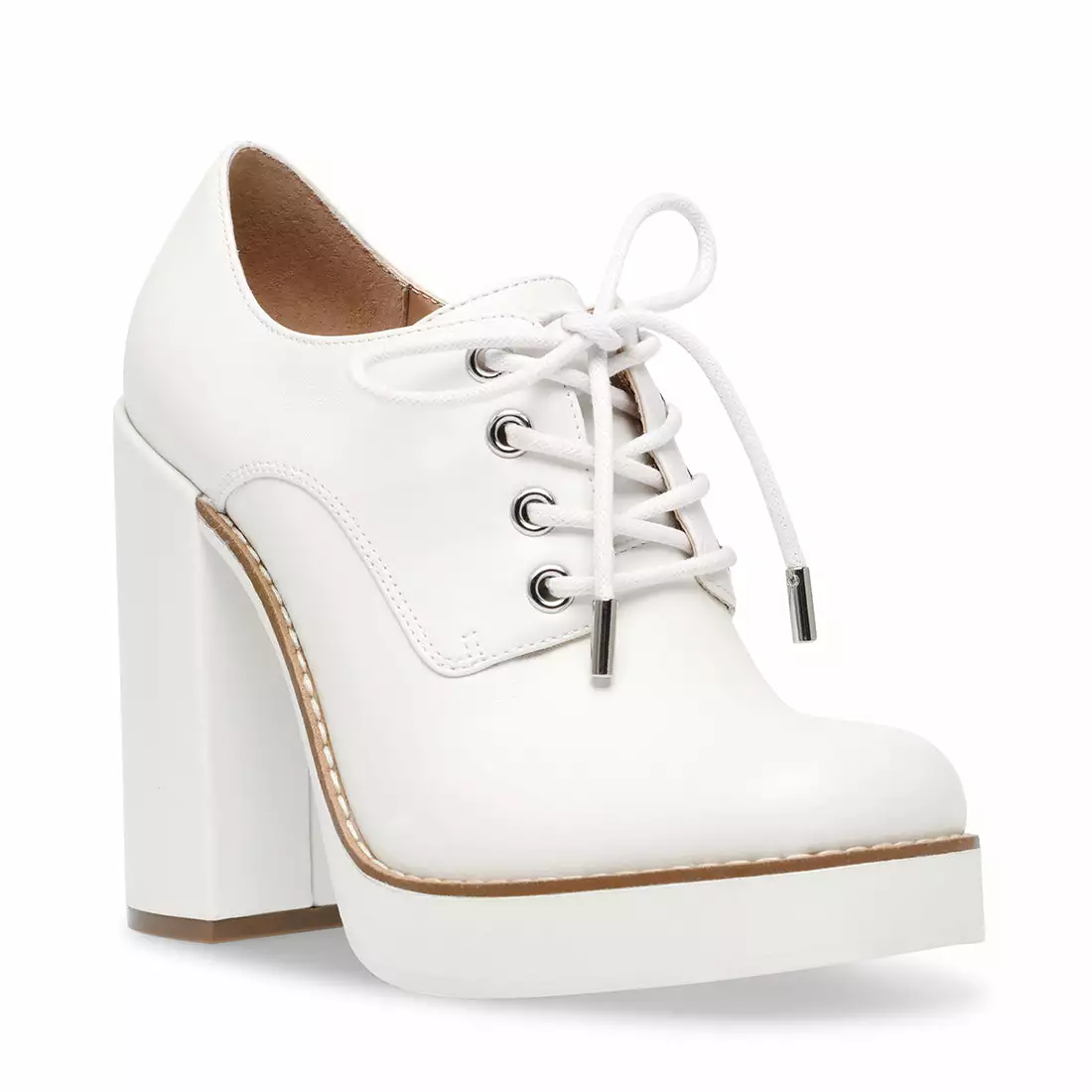 With a towering heel, platform sole and clean tailored upper, the TRISTIE lace-up serves a super-snazzy look and lots of frame-boosting lift. Rock this sharp new dress shoe in pretty white or shiny croc-embossed black.ย